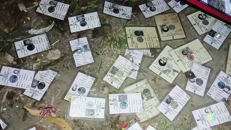 According to locals, the names and addresses printed on the recovered cards match those of residents in the area. However, the individuals concerned claim that their original voter IDs are safely at home. This has triggered serious questions about how duplicate or counterfeit cards bear ing the same details ended up on the roadside