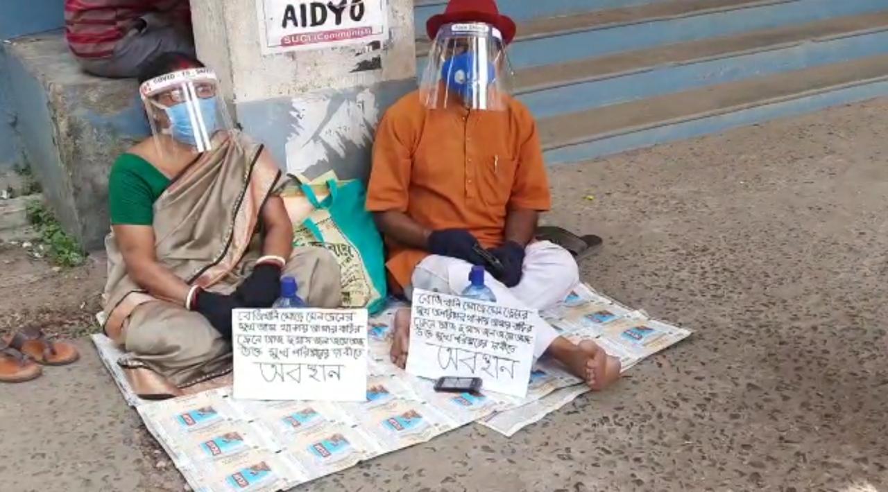 Sushant Ghosh and his wife Krishna Ghosh are the residents of world 15 of Krishnanagar municipality. Both are senior citizens. As the drainage system of their locality has turned their lives into a hell, they sat in demonstration before the office of SDO Sadar, Manish Verma.
